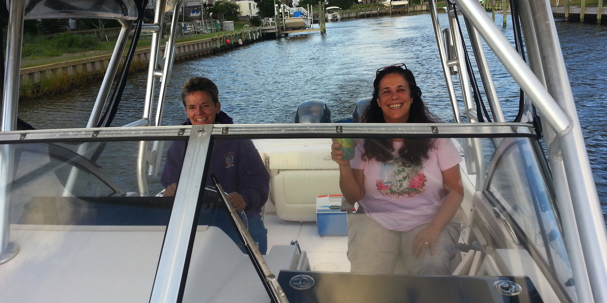 Karen and Doreen boated extensively throughout the waters of North Carolina, and they especially loved to fish, even going offshore in cold conditions. “As long as it wasn’t cooler than about 45° and the sun was shining, we’d bundle up and head offshore,” said Karen. “Once we found the right spot, we’d put out the lines and go back up to the helm to get out of the wind. When a fish would strike, we’d put on our gloves, run out, and reel it in!” A far cry from the days of fishing on the inflatable, these trips are still some of Karen’s favorite memories from her time on the Outer Banks. Ten years after purchasing the Overnighter, she upgraded to a larger cabin boat, the Seafarer 228. The wider beam and the twin engines were a plus, in addition to the larger cabin. This proved especially beneficial one time when they made the three-and-a-half-hour drive from Richmond to the Outer Banks, not knowing that Karen’s vacation cottage had been rented out for the weekend. Not long after arriving, there was a knock at the door – and that’s when she discovered the cottage was in fact rented. “I told them we were just there to make sure the house was ready,” Karen said. “Doreen and I quickly grabbed our bags, went to the dock, and hopped on the boat.” There was a big fishing tournament taking place that weekend, so they were lucky to get one of the last slips at a local marina, where they spent the weekend on the boat. “The spacious cabin on the 228 was most comfortable and it turned out to be a lot of fun with all the tournament activity going on around us,” Karen said. She also recalls getting a lot of compliments on her boat from the owners of the large sportfishing boats.