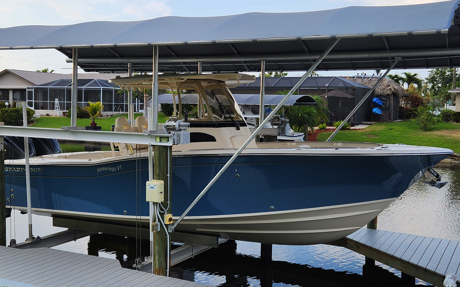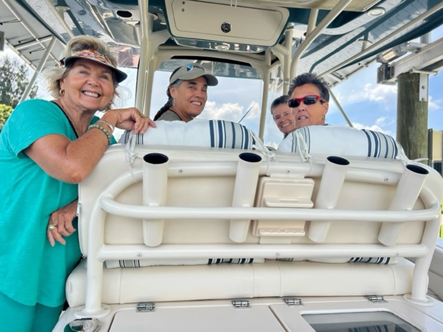 This past fall, Karen and Doreen sat on their lanai as Hurricane Ian made its way ashore. Having already lost power, they had no idea the storm’s path had changed course and was passing very close. Fortunately, the boat was strapped down tight on the lift and sustained only a little damage to the hardtop. When Karen took it to the dealer for repairs, she saw the new model upgrades Grady-White had made to the 271 and couldn’t resist ordering a new one. A top selling point was the plush Command Elite helm chairs which easily adjust to the perfect position for every captain. Another was the new Helm Master EX® with Full Maneuverability – offering a range of exceptional handling options. As always, she was equally pleased with the team at Fish Tale Boats. “Ray Jahn, Capt. Jeff Hunter, and Eric Riley are really super, take great care of our boats, and are a pleasure to work with,” said Karen.