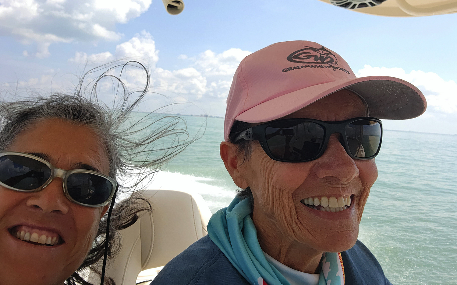 After recently taking delivery of her new boat, Karen is excited to take trips with the local Grady-White club and start planning adventures of her own. Sadly, the hurricane damaged a lot of the area marinas and restaurants, so many are not open right now. To fill their time, Karen and Doreen are planning some long-range trips. First on the list is Islamorada in the Florida Keys. They also want to go over to the Bahamas. “Though I have no doubt the boat can handle rough seas, I think this time we’ll give ourselves a longer window to travel and stay put if the weather gets really rough,” says Karen.