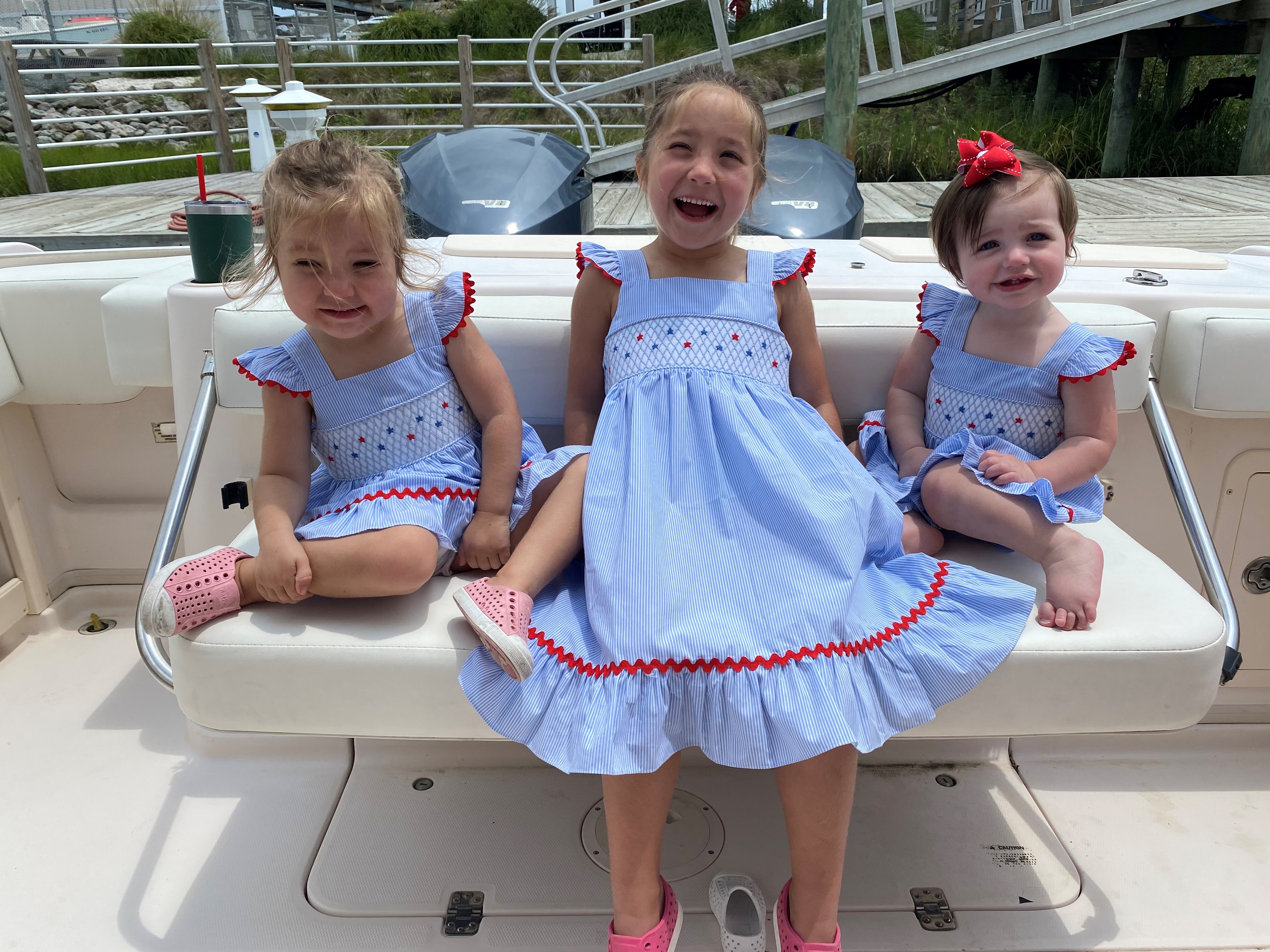 Russell and Nancy Proctor’s three granddaughters (left to right) Lucy Mullen, Blair Mullen, and Mary Kate Proctor, enjoy boating out of Surf City, North Carolina, on their third Grady-White, an Express 305.
