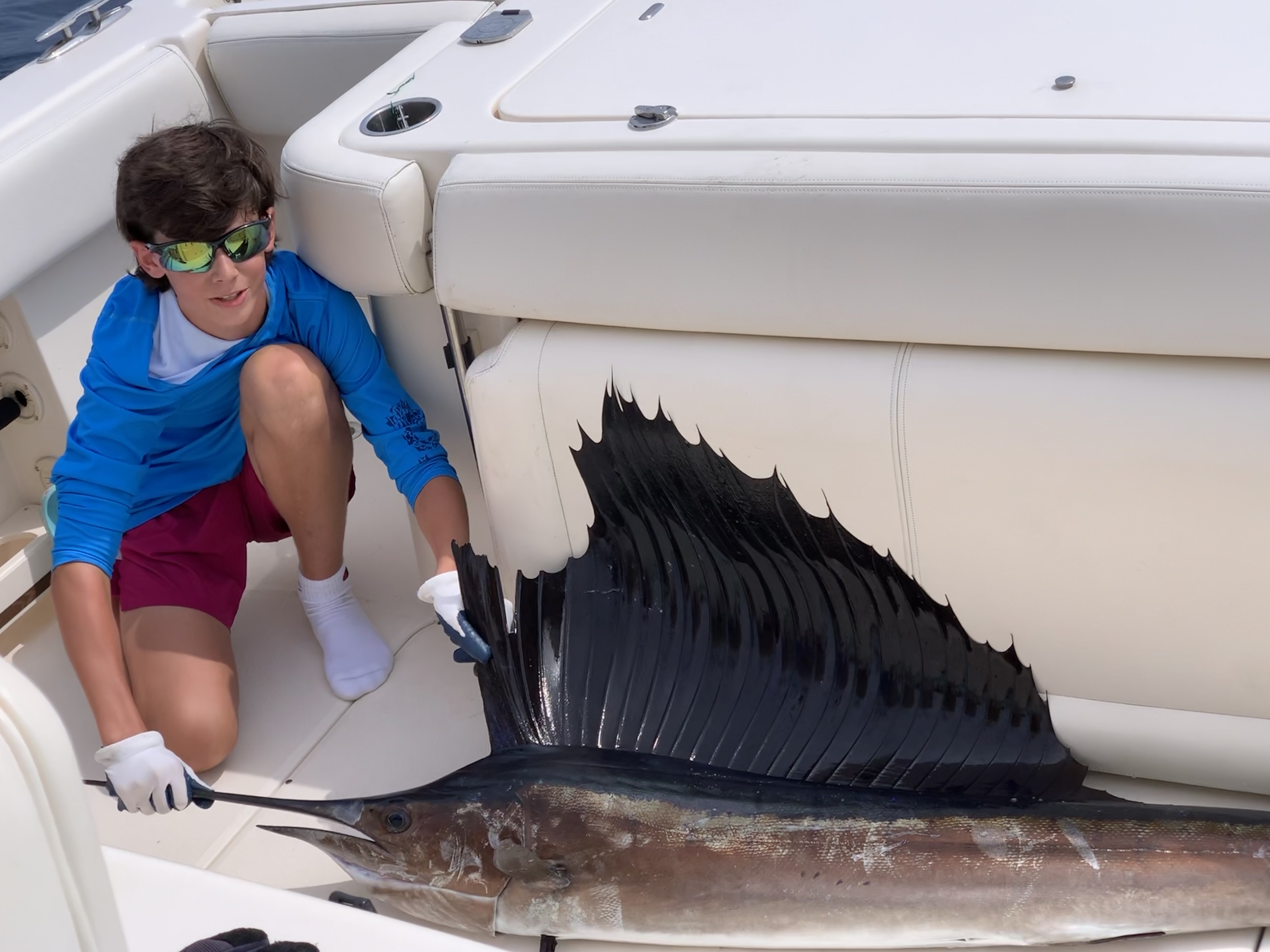 Carson Mothershed caught and released his first sailfish on his father and grandfather‘s Canyon 306 25-miles off of Wrightsville Beach, North Carolina.