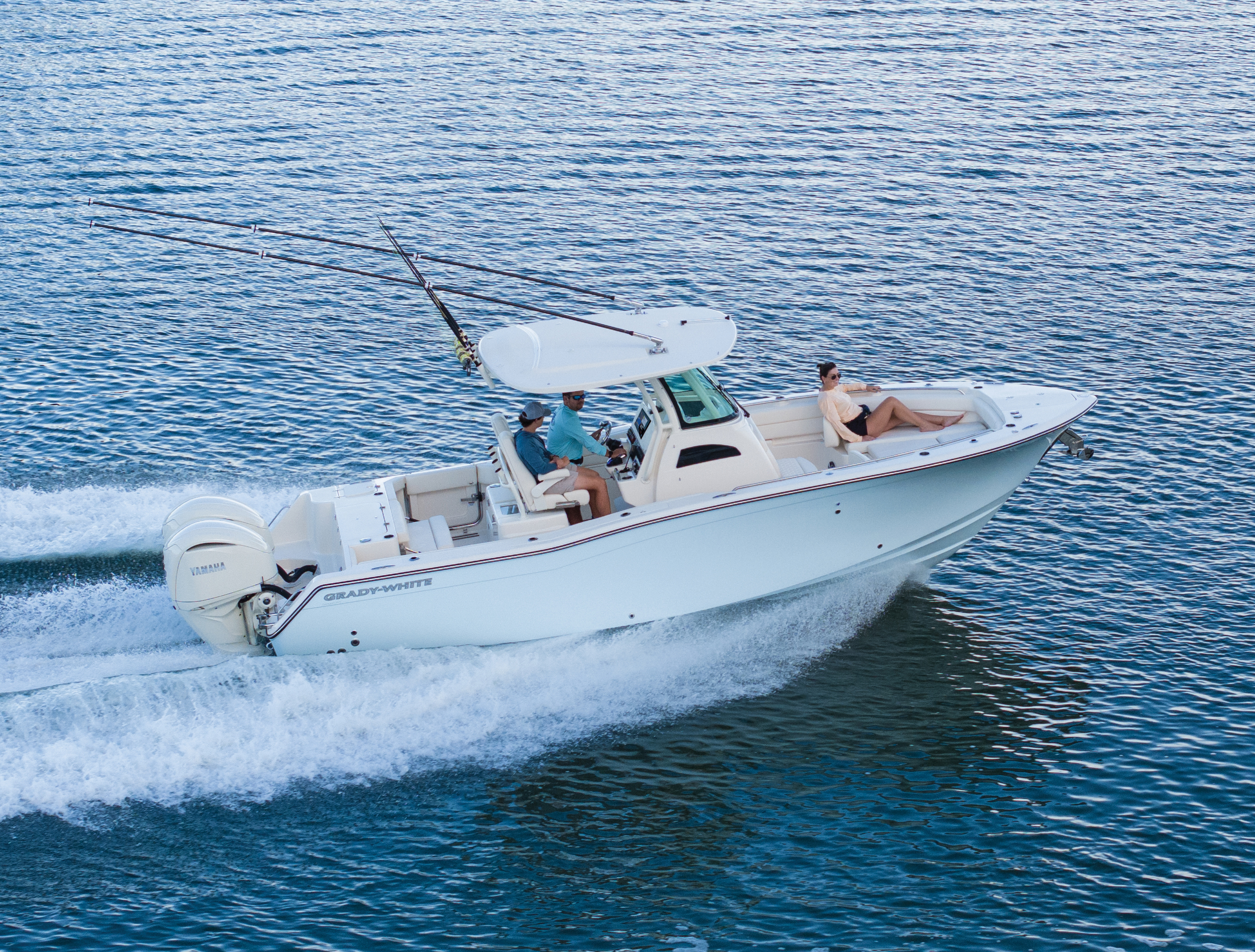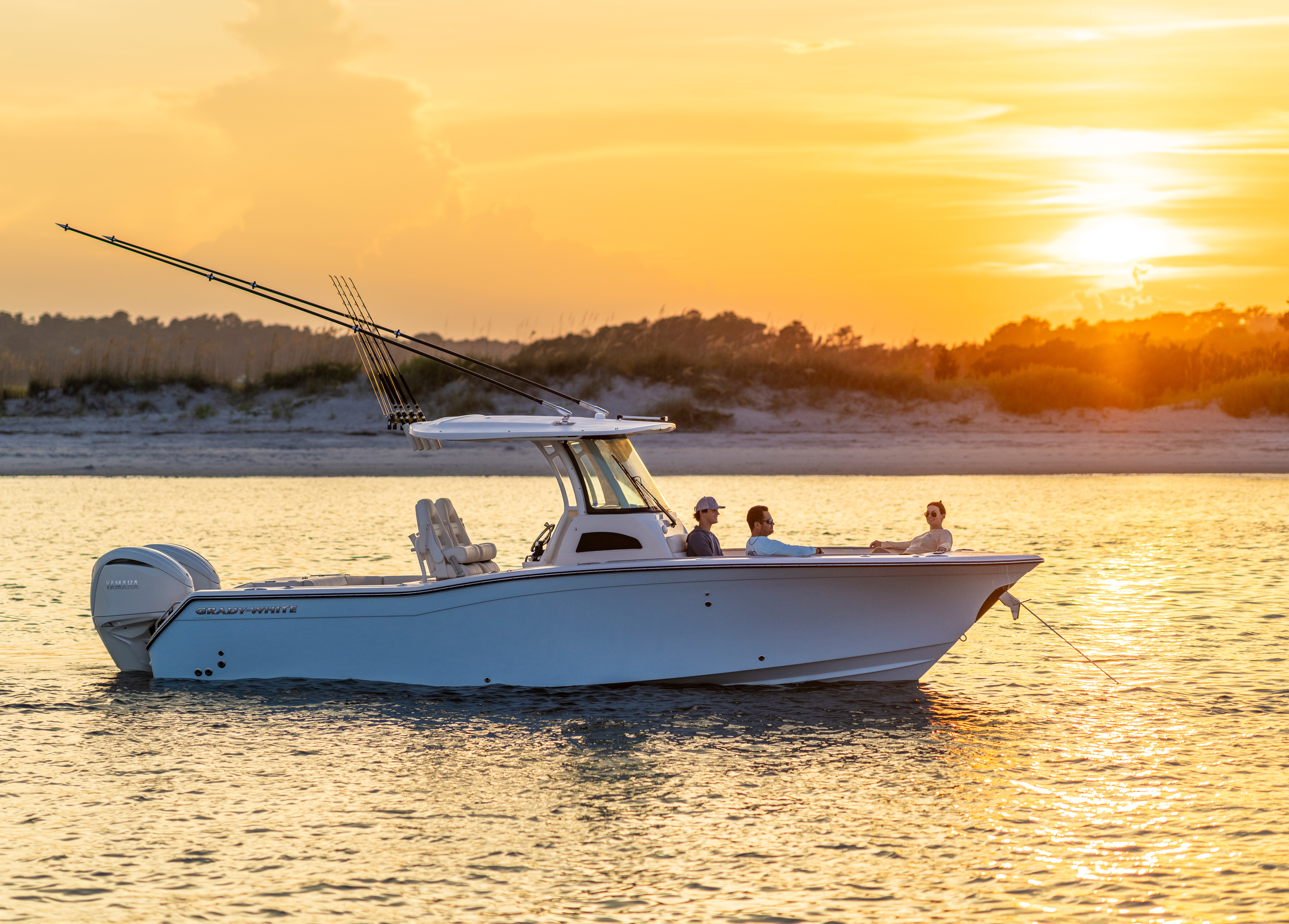Grady-White took the center console concept to the next level with the Canyon 271! At 27 feet, this is one of the best offshore fishing boats that delivers big boat features. It starts with the new port side cockpit door and moves on to include a deluxe lean bar that incorporates four rod holders, a rigging station, tackle storage, and a 42-gallon raw water livewell. This boat is fishing ready. All built on Grady’s exceptional riding exclusive SeaV²® hull, the 271 assures the driest ride of any boat on the market. Hit the fishing grounds in comfort and style, then enjoy a sunset cruise on this family-friendly center console boat.